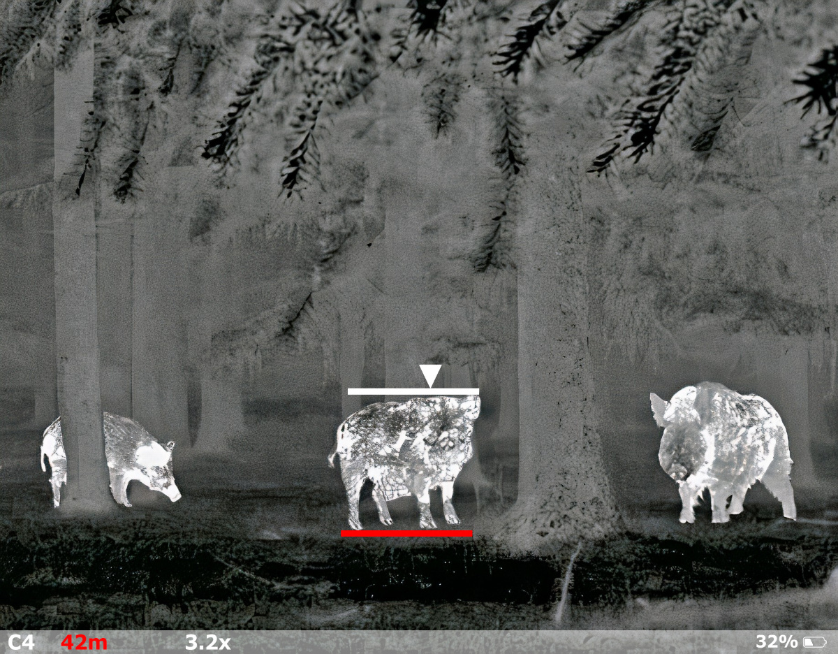 При штатном увеличении 1,7 крата стрелок получает информативный обзор на ближних дистанциях, с включённым цифровым зумом – улучшенную детализацию и идентификацию выбранной цели.